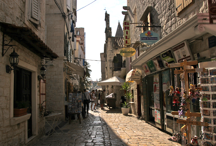 Frogyland around the corner from Diocletian’s mausoleum. Multi-karat jewelry stores with pornographic